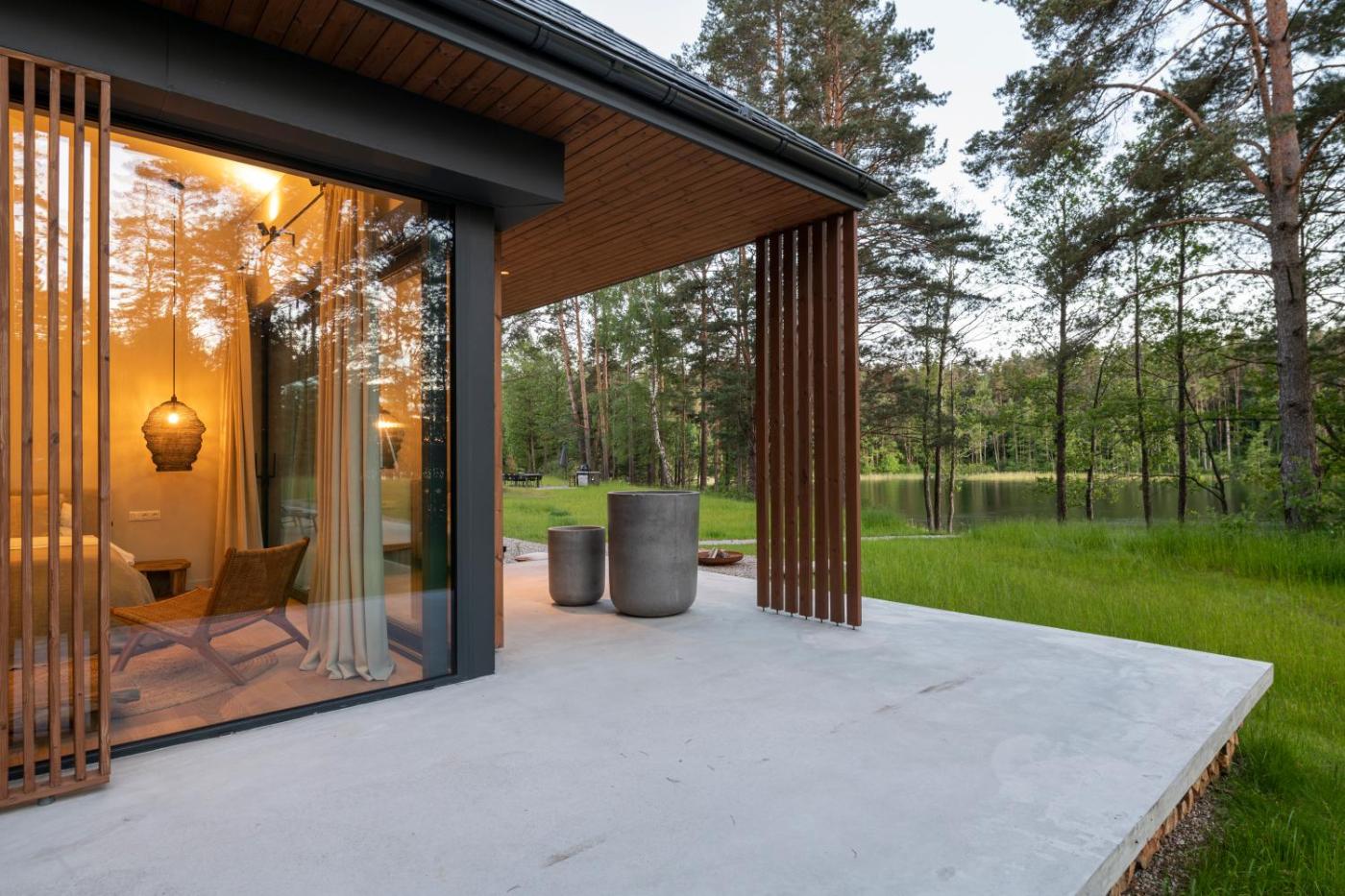 Boasting lake views, The Lake - Waterfront Villas Retreat provides accommodation with patio, around 20 km from Lithuanian Ethnocosmology Museum. This property offers access to a terrace, free private parking and free WiFi. Featuring family rooms, this property also provides guests with an outdoor fireplace.