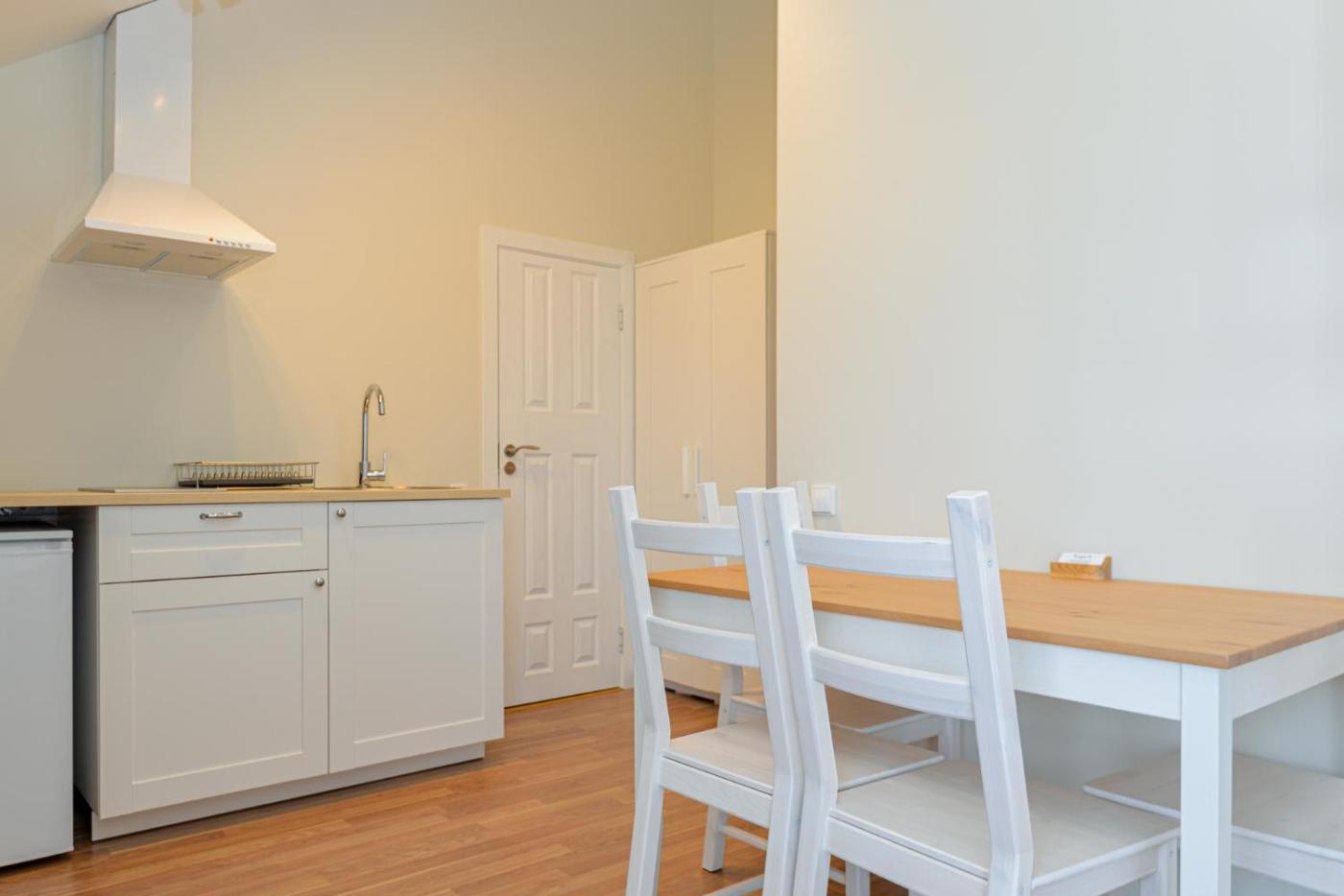 Standard Apartment. This apartment is comprised of 1 bedroom, a kitchenette and 1 bathroom with a walk-in shower and a hairdryer. In the fully equipped kitchenette, guests will find a stovetop, a refrigerator, kitchenware and an electric kettle. The apartment offers a dining area, a wardrobe, parquet floors, heating and a flat-screen TV with satellite channels. The unit offers 1 bed. ;