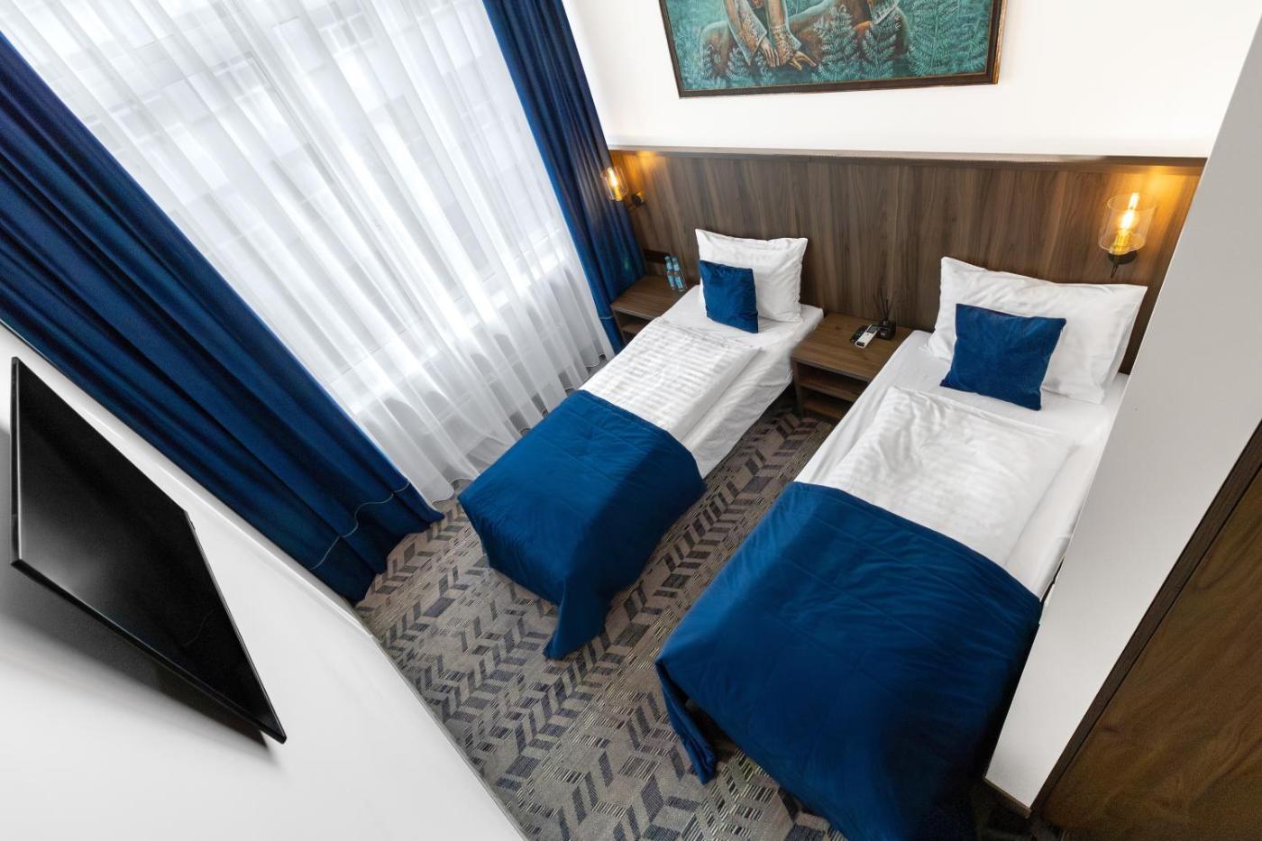 Double Room. The double room offers a carpeted floor, heating, as well as a private bathroom boasting a walk-in shower and a hairdryer. The air-conditioned double room features a flat-screen TV with cable channels, a wardrobe, a safe deposit box, an electric kettle as well as city views. ;