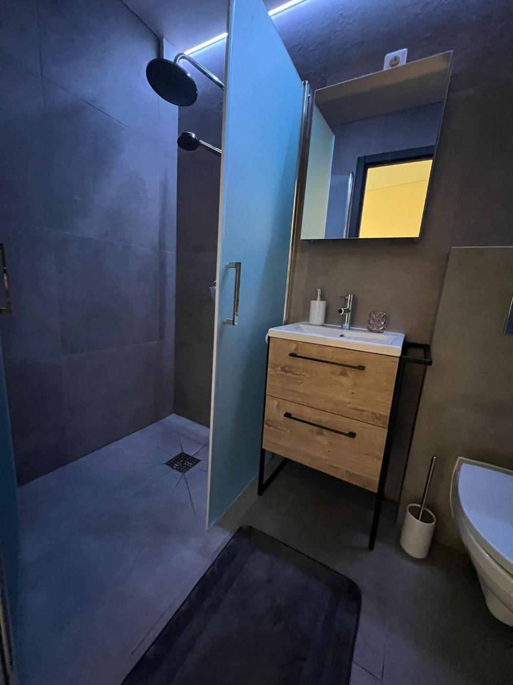 Double Room. The spacious double room features air conditioning, a dining area, as well as a private bathroom boasting a shower and slippers. This double room has a wardrobe, an electric kettle, a flat-screen TV and a quiet street view. The unit has 2 beds.